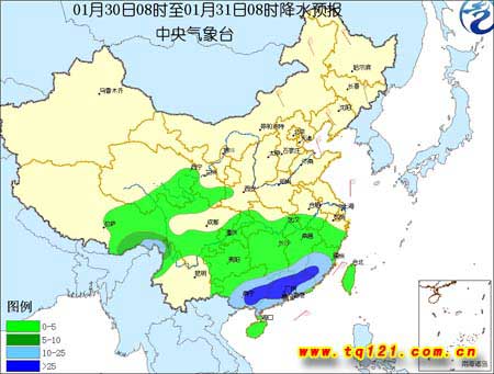 30日08時(shí)至31日08時(shí),西藏東部、青海東南部、甘肅南部以及西南地區(qū)大部等地陰有小到中雪(雨)或雨夾雪,其中,西藏東部和云南西北部的部分地區(qū)有大雪。貴州中南部、湖南南部等地的部分地區(qū)有凍雨。江南南部、華南大部等地陰有小到中雨,其中,廣西東部和廣東中北部的部分地區(qū)有大雨。內(nèi)蒙古東部、東北地區(qū)有4~6級(jí)偏北風(fēng);東部和南部海區(qū)有5~7級(jí)偏北風(fēng)。