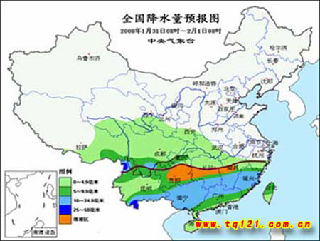 中新網(wǎng)1月31日電 據(jù)中央氣象臺預報,31日起,中國南方大部自西向東將有一次明顯雨雪天氣過程。江南南部、華南北部的部分地區(qū)有大雨,局部地區(qū)有暴雨;西藏東南部、川西高原南部、云南西北部和東北部、貴州北部、湖北南部、湖南中北部、江西北部、浙江中北部、蘇皖南部等地的部分地區(qū)有大雪,局地有暴雪;貴州大部、湖南中南部、江西中部等地的部分地區(qū)有凍雨。