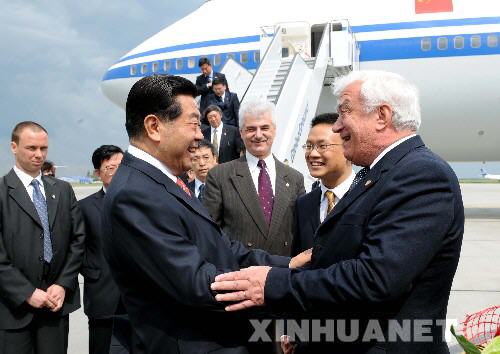 當?shù)貢r間4日下午3時許,賈慶林乘坐的專機降落在布加勒斯特廣達國際機場。羅馬尼亞參議院副議長奇斯馬魯、中國駐羅馬尼亞大使劉增文、使館工作人員和當?shù)刂匈Y機構(gòu)、華僑華人和留學生代表到機場迎接。全國政協(xié)副主席兼秘書長錢運錄等陪同人員同機抵達。