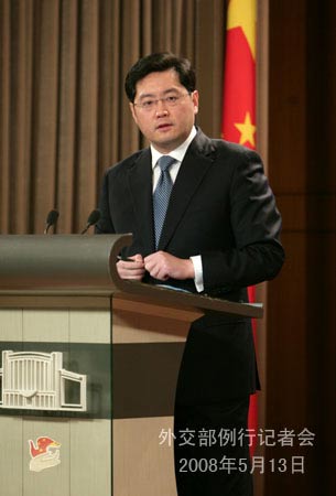 中新網(wǎng)5月13日電 外交部網(wǎng)站消息,5月13日下午,中國外交部發(fā)言人秦剛舉行例行記者會,就四川汶川嚴重地震災(zāi)害、朝鮮半島核問題等答問。