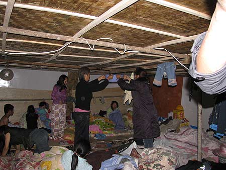 凌晨兩點鐘,記者冒雨到各受災(zāi)群眾和游客臨時防震棚采訪,90%的防震棚在漏雨。在游客防震棚內(nèi),記者看到,許多人被淋醒,抱著衣服擠到不漏雨的地方,冷得直發(fā)抖,小孩哭叫不已。許多女游客本就驚魂未定又遭雨災(zāi),傷心地哭泣起來。她們哭著說,我們想親人、想回家。她們需要防雨設(shè)施,需要藥品、食物和水!
