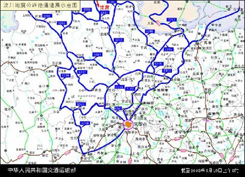 戴東昌說,在17號(hào)晚上,經(jīng)過非常艱苦的努力,打通了往茂縣的通道。交通部派出了第二個(gè)工作組,帶著甘肅的支援隊(duì)伍、設(shè)備、技術(shù)人員一路邊走邊打,會(huì)同當(dāng)?shù)亟煌ú块T,從甘肅蘭州沿著北線分別從松潘和黑水,經(jīng)過沙壩一直打通到茂縣,全線終于在17號(hào)晚上打通。又開辟了一條通往重災(zāi)區(qū)新的運(yùn)輸生命線。在這之前,許多運(yùn)送救災(zāi)物資的車輛實(shí)際上已經(jīng)在沿途準(zhǔn)備著,隨著公路的打通,源源不斷地運(yùn)送救災(zāi)物資、救災(zāi)人員、醫(yī)護(hù)人員、食品、藥品進(jìn)入災(zāi)區(qū)。在打通的初期,基本上保持一個(gè)便道能夠通行,隨后逐步擴(kuò)寬,確保運(yùn)輸車輛先過去。