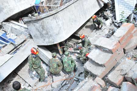 (字幕)當(dāng)綿陽(yáng)市政府得到消息后,有關(guān)人員在兩小時(shí)后趕到北川縣,成立了抗震救災(zāi)前線(xiàn)指揮部。