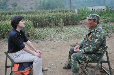 董倩演播室串場(chǎng):我跟著經(jīng)大忠縣長(zhǎng),從設(shè)在北川中學(xué)的前線(xiàn)指揮部步行到北川的老縣城。在這條路上,不斷能夠迎面遇到從山里面撤出來(lái)的,受災(zāi)地區(qū)的群眾。這個(gè)時(shí)候經(jīng)縣長(zhǎng)就會(huì)撇下我走上去問(wèn),你們從哪來(lái)?要撤到哪去?家里的東西帶出來(lái)沒(méi)有,身上現(xiàn)在還缺點(diǎn)什么?很多人都不知道他是誰(shuí)。有的人就問(wèn),你是誰(shuí)?這個(gè)時(shí)候經(jīng)大忠往往不回答。我會(huì)替他回答,我說(shuō)這是經(jīng)縣長(zhǎng),你們的縣長(zhǎng)。有個(gè)小伙子知道他就是縣長(zhǎng),拍著胸脯說(shuō):“縣長(zhǎng)你放心,我們行!蔽以谂赃呾o靜地看著,我看著縣長(zhǎng)和普通百姓之間的這種一問(wèn)一答,從中我看到了在經(jīng)歷過(guò)這場(chǎng)巨大的災(zāi)難之后,他們之間彼此信任、信賴(lài)的這種關(guān)系。而且我也看到了,他們對(duì)于未來(lái)的那種希望。