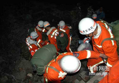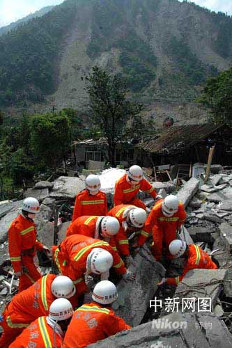 ——山東省消防總隊(duì)官兵徒步進(jìn)入汶川映秀鎮(zhèn)搶險記