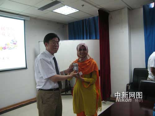 蘭大一院院長將甘肅敦煌的工藝品贈于巴基斯坦醫(yī)療隊以作紀念。作者:劉薛梅