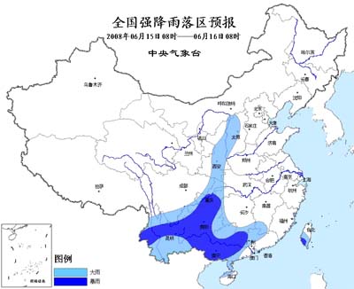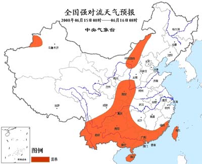 中新網(wǎng)6月15日電 中央氣象臺今晨六點(diǎn)鐘發(fā)布暴雨預(yù)報(bào):