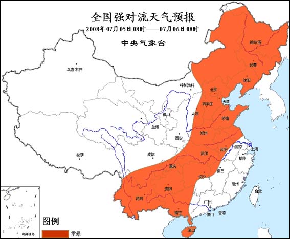中新網(wǎng)7月5日電 據(jù)問天網(wǎng)消息:中央氣象臺(tái)5日6時(shí)繼續(xù)發(fā)布強(qiáng)對(duì)流天氣預(yù)報(bào)。