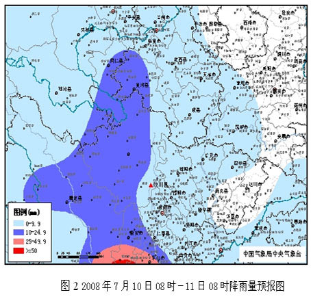 10~11日:地震災(zāi)區(qū)以陰天間多云天氣為主,有陣雨或雷陣雨,雨量小到中雨,局部地區(qū)有大雨(圖2);氣溫將下降2-5℃。