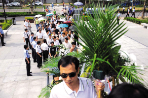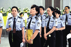 龍華殯儀館工作人員張雁琳對記者說,為了布置好追悼大會的6個(gè)分會場,她和十幾名同事今天早晨6時(shí)就趕到了殯儀館,已經(jīng)忙了4個(gè)多小時(shí)!斑@些民警平時(shí)為了維護(hù)社會治安,奉獻(xiàn)了很多。為他們?nèi)松淖詈笠徽舅托凶鳇c(diǎn)事,表達(dá)我們對他們的一片敬意。”(雍和 江躍中 潘高峰 鄒瑞玥)