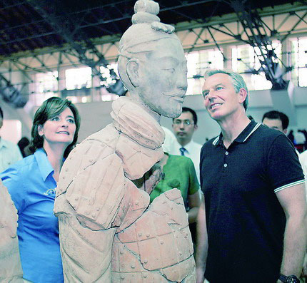 中國人民外交學(xué)會的邀請,英國前首相布萊爾作為奧運(yùn)會貴賓于8月15日至23日訪華。8月18日下午,布萊爾攜同家人專程來陜參觀了秦始皇兵馬俑博物館。省長袁純清陪同參觀。