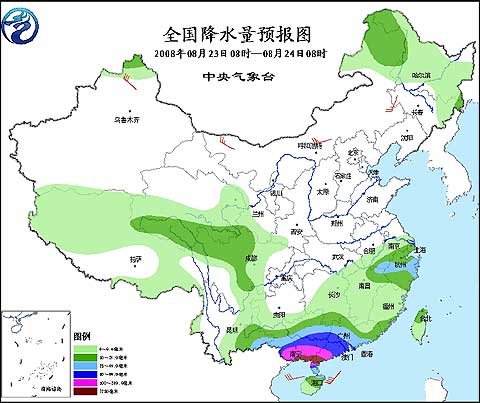 2008年8月23日08時—8月24日08時全國降水量預(yù)報圖