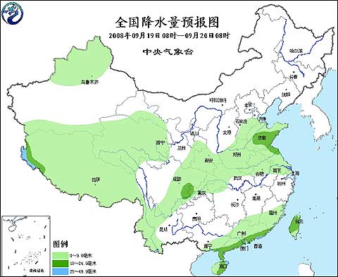 2008年9月19日8時(shí)—9月20日8時(shí)全國降水量預(yù)報(bào)圖