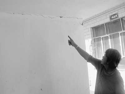 好景不長(zhǎng),新房很快也出現(xiàn)一道道裂縫,村民惶恐不安。在新村采訪時(shí),秦文清、武須信、武旭忠等幾位村民爭(zhēng)先恐后地拉記者去自己家里看墻上的裂縫。村民王改女家的堂屋、臥室、廚房、衛(wèi)生間,幾乎每間房都有大大小小的裂縫,她說(shuō)住著害怕,可又找不到避難的住所(見(jiàn)圖①)。