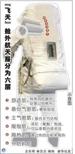 航天服的左臂上印著鮮紅的國(guó)旗,右臂上有兩個(gè)大字:“飛天”。航天服研究室主任劉向陽說,“飛天”是中國(guó)研制的第一代艙外航天服,整體設(shè)計(jì)和各部件的設(shè)計(jì)、組裝都是中國(guó)人自己完成的。就完成目前任務(wù)的能力而言,接近國(guó)際水平。