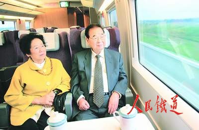 隨后,李鵬走進駕駛室,興致勃勃地察看了動車組列車控制系統(tǒng)和動車組司機的操縱情況。劉志軍向李鵬介紹:我們乘坐的列車是靠計算機控制的。中央指揮系統(tǒng)把指令傳輸?shù)杰壍郎系南嚓P設備,列車從軌道上的設備取得信號,實施行車、加速、減速、制動等技術動作。這一系統(tǒng)是目前世界上最先進的。李鵬又了解了京津城際鐵路占地情況,詢問如何解決與公路交叉等問題。劉志軍匯報說,京津城際鐵路87%是橋梁,每公里橋梁與傳統(tǒng)的路基相比可以節(jié)省45畝土地,同時高架的橋梁也杜絕了與公路的平面交叉,有利于保證安全。劉志軍說,目前在建的京滬高速鐵路和一大批客運專線都借鑒了京津城際鐵路的成功經驗,以橋代路的模式被廣泛應用。李鵬稱贊京津城際鐵路創(chuàng)造了世界高速鐵路的最新成果。他關切地詢問,像京津城際這樣的高速鐵路,現(xiàn)在建設的有多少?劉志軍說,目前在建的高速鐵路和客運專線有7000公里,再過3至5年,京滬、京廣、京哈、隴海(東段)、哈大、東南沿海等客運專線將全線貫通。李鵬聽了非常高興。他說,近年來,鐵路建設和技術裝備現(xiàn)代化的發(fā)展很快,老百姓享受到了鐵路改革發(fā)展的成果。他希望鐵路部門高標準、高質量地建好京滬高速鐵路和其他客運專線,為旅客提供更加便利、快捷的出行條件。