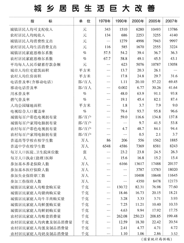 中國30年改革開放成就統(tǒng)計表