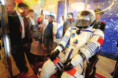 昨天,工作人員開(kāi)始安裝保護(hù)“神七”航天員翟志剛艙內(nèi)航天服的玻璃罩。