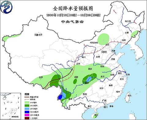 2008年10月28日08時—10月29日08時全國降水量預(yù)報圖