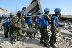 作為負(fù)責(zé)任的大國,中國積極參加聯(lián)合國維和行動,派出多批醫(yī)療、工兵和運(yùn)輸分隊(duì)執(zhí)行救死扶傷、排除雷患和運(yùn)輸物資的任務(wù),受到廣泛贊譽(yù)。