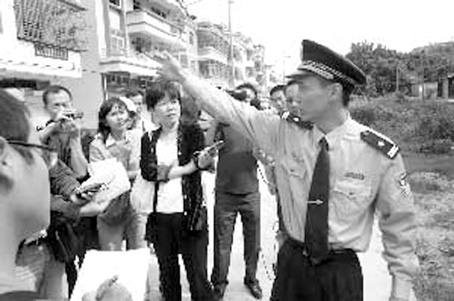 大約3個小時后,在斗門區(qū)白蕉派出所,珠海市警方舉行了媒體見面會。見面會上,11月5日開槍擊斃泥頭車司機駱某的警察余新化終于亮相,并前往開槍現(xiàn)場向記者講述了開槍過程。