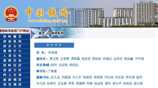 26日鐵嶺市政府政府領(lǐng)導(dǎo)名單(網(wǎng)站截圖)