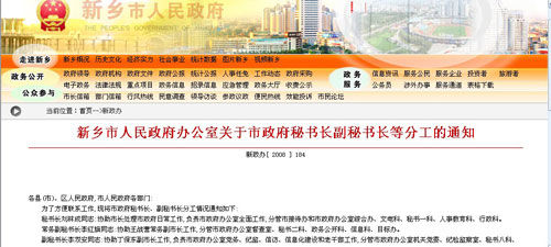 記者隨后登陸新鄉(xiāng)市人民政府門戶網(wǎng)站,在市政府文件一欄,發(fā)現(xiàn)了該市2008年10月通過的《新鄉(xiāng)市人民政府關(guān)于市長副市長市長助理等分工的通知》和《新鄉(xiāng)市人民政府辦公室關(guān)于市政府秘書長副秘書長等分工的通知》兩個(gè)文件,文件表明,河南省新鄉(xiāng)市設(shè)有11名副市長;1名秘書長,16名副秘書長;此外還有6名調(diào)研員協(xié)助副市長工作。 (荊楚網(wǎng))