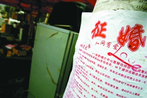 11月23日,北川擂鼓鎮(zhèn),征婚啟事隨處可見。 記者 王申