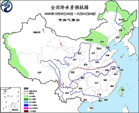 2008年12月9日8時(shí)—12月10日8時(shí)全國(guó)降水量預(yù)報(bào)圖