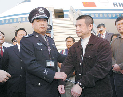 2004年4月16日,“開平”案主犯余振東被押回中國。新華社資料圖片