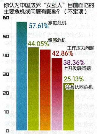 57.61%的受調(diào)查者認(rèn)為,政界“女強人”面臨的主要危機是“家庭危機”