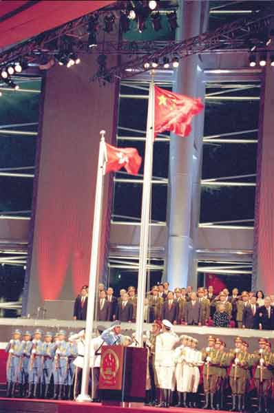 132天之后,飄揚(yáng)了一百五十多年的米字旗緩緩降下,五星紅旗和紫荊花旗在東方之珠冉冉升起。