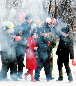 解放軍駐黑瞎子島邊防哨所舉行婚禮(組圖)