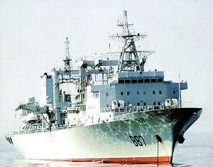 “微山湖”號綜合補給艦,是我國自行設(shè)計建造的大型補給艦,排水量近3萬噸,可同時對3艘艦艇和1架直升機進行補給,可自行攜帶1架直升機。該艦先后圓滿完成出訪巴基斯坦、印度、泰國、俄羅斯、英國、西班牙、法國、日本等艦艇伴隨保障任務(wù)以及遠(yuǎn)航訓(xùn)練和聯(lián)合軍演,目前已安全航行近10萬海里。