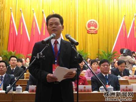 新當(dāng)選的株洲市人民政府市長王群發(fā)表了講話。王群說,他深知市長是一個神圣的崗位。“一個人民選舉的市長,一個屬于人民的市長,一定要成為一個為了人民的市長,這就是我的承諾。為此,我將殫精竭慮,不懈努力!”王群表示,他將虛心向老領(lǐng)導(dǎo)、老同志學(xué)習(xí),向全市干部群眾學(xué)習(xí),向書本和實踐學(xué)習(xí),在學(xué)習(xí)中拓寬視野,提升境界,提高推動科學(xué)發(fā)展的水平,增強駕馭市場經(jīng)濟的能力,努力成為現(xiàn)代化的建設(shè)型領(lǐng)導(dǎo);堅持一切從實際出發(fā),察實情、講實話、辦實事、求實效,把“人民群眾的幸福感就是執(zhí)政者的成就感”作為座右銘,思想上尊重群眾、感情上貼近群眾、工作上依靠群眾,讓全市人民,尤其是困難弱勢群體享受改革發(fā)展的成果。發(fā)揚五湖四海、開放包容的株洲傳統(tǒng),珍惜團結(jié)和諧、政通人和的良好局面,堅決服從以君文書記為班長的市委領(lǐng)導(dǎo),自覺接受人大監(jiān)督,積極支持政協(xié)參政議政,努力做到依法行政,高度重視政府班子的建設(shè)和團結(jié),敢于擔(dān)當(dāng)、敢于負(fù)責(zé)、敢于批評,把政府一班人的力量凝聚起來,把政府各部門的作用發(fā)揮出來,全心全意為株洲人民謀福祉。嚴(yán)格遵守黨紀(jì)國法,認(rèn)真執(zhí)行廉政規(guī)定,清廉自守、秉公用權(quán),自省自勵、慎獨慎微,不拿原則作交易,不以權(quán)力謀私利,抓好班子,帶好隊伍,教育好親屬和身邊工作人員,“絕不允許打著我的旗號辦私事,憑借我的影響搞特殊!