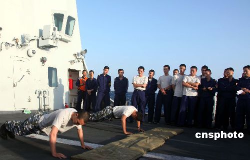 護(hù)航編隊(duì)駛?cè)胗《妊笠詠恚咳仗鞖馇绾、艷陽高照。