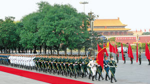 中國(guó)人民解放軍陸?杖妰x仗隊(duì)主要擔(dān)負(fù)迎送外國(guó)元首、政府首腦、軍隊(duì)高級(jí)將領(lǐng)及紀(jì)念、慶典等重大國(guó)事活動(dòng)的儀仗司禮任務(wù)。禮儀是一個(gè)國(guó)家文化的精華,軍人執(zhí)行的國(guó)禮、軍禮更是一種精粹。三軍儀仗隊(duì)建隊(duì)以來,先后圓滿完成了外國(guó)首腦訪問,香港、澳門回歸政權(quán)交接儀式升國(guó)旗,奧運(yùn)會(huì)、殘奧會(huì)開閉幕式國(guó)旗升降、頒獎(jiǎng)等3000多次儀仗司禮任務(wù),被中央軍委授予“軍旅標(biāo)兵”榮譽(yù)稱號(hào),贏得了國(guó)內(nèi)外公眾和輿論的廣泛贊譽(yù)。朱民、劉桂利、張力攝影報(bào)道
