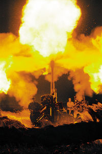 筆者看到,演習(xí)中他們始終用火力毀傷效果來控制戰(zhàn)斗進(jìn)程。中軍帳里,師、團(tuán)、營三級指揮員時而網(wǎng)上點(diǎn)對點(diǎn)發(fā)號施令,時而用密語下達(dá)作戰(zhàn)命令。副師長李春紅一語中的:“復(fù)雜電磁環(huán)境下作戰(zhàn),火力的地位和作用更加凸現(xiàn),由過去從屬地位的火力準(zhǔn)備行動上升為決定戰(zhàn)斗進(jìn)程的火力突擊行動。”話音未落,電臺里傳來師長汪海江命令:“各攻擊群延緩攻擊;鹆f(xié)調(diào)組,立體補(bǔ)充聯(lián)合火力打擊!”