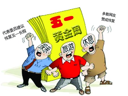 在廣東推出“國民旅游休閑計劃”后,我。ㄉ綎|)人大代表和政協(xié)委員也遙相呼應(yīng)。13日,省政協(xié)委員、蓬萊八仙過海旅游公司董事長李海峰在接受記者采訪時建議恢復(fù)五一黃金周,以此刺激經(jīng)濟(jì),拉動內(nèi)需。省人大代表、濟(jì)南華聯(lián)商廈集團(tuán)董事長李茂年則認(rèn)為,恢復(fù)五一黃金周對零售業(yè)的發(fā)展也是一件好事。