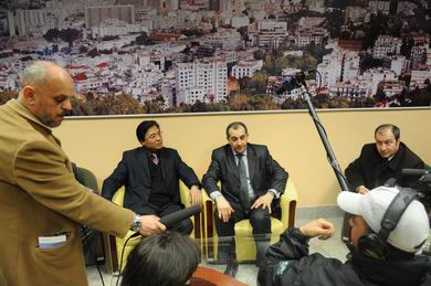 中新網(wǎng)2月23日電 據(jù)中國(guó)外交部網(wǎng)站消息,2月22日,中國(guó)與阿爾及利亞正式開通北京—阿爾及爾直飛航班。中國(guó)駐阿大使劉玉和、阿外交部亞大總司司長(zhǎng)、交通部航空局局長(zhǎng)等阿官員及部分駐阿中資機(jī)構(gòu)代表等作為貴賓一道乘首航班機(jī)前往北京。行前劉大使和阿航總裁阿卜杜拉共同接受了新華社、阿新社、阿電臺(tái)等媒體采訪。