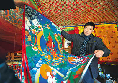 近年來,中國開展的一系列藏文化宣傳活動對藏文化的傳播也產(chǎn)生了很大的影響。拉姆說,自《藏謎》上演以后,很多顧客上門,點名要買楊麗萍在其中所扮演的度母為主題的唐卡。