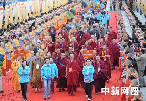 中新網(wǎng)無錫三月二十八日電(記者 陳光明 朱曉穎)第二屆世界佛教論壇今日上午八點半在江蘇無錫市盛大開幕。來自五十多個國家和地區(qū)的一千二百余佛教界高僧大德及專家學者匯聚無錫靈山,與會的高僧大德和文化學者將共同探討佛教在面對國際沖突、環(huán)境惡化、經(jīng)濟變化時的社會責任和作為。