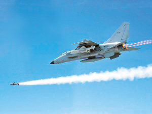 3月中旬,某艦隊航空兵飛行團數(shù)架新型“飛豹”戰(zhàn)機急速而起,穿云破霧直撲作戰(zhàn)海域。發(fā)現(xiàn)目標,該飛行團團長李軍迅速鎖定目標,按下發(fā)射按鈕,導彈如銀空利箭,直奔“敵”艦……
