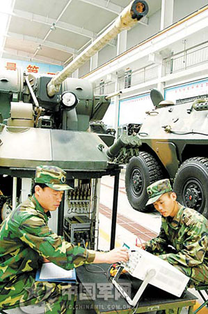 “能不能近距離看一下某個單車的保養(yǎng)情況?”“沒問題”,葉禹一點鼠標,屏幕上立即出現(xiàn)了5名戰(zhàn)士正在對413號戰(zhàn)車實施保養(yǎng)的鏡頭。記者看到,有的戰(zhàn)士正在用儀器檢查炮管、檢測線路,有的戰(zhàn)士正在細心察看拆卸下來的部件磨損情況,整個保養(yǎng)工作秩序井然。