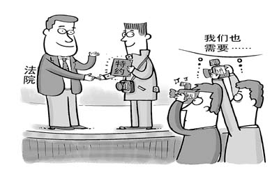 法院此舉只是為相關記者提供采訪便利,并無經濟支持,因此不存在“收買”一說。法院方面也歡迎記者“挑刺”。受聘記者與其他記者的確是有區(qū)別的,比如一個案件出來后,我們可能優(yōu)先通知受聘記者。但對于其他媒體記者的正當采訪,我們還是一如既往地歡迎。