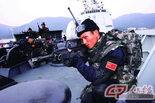 2005年,“和平使命—2005”中俄聯(lián)合軍演正式在俄羅斯的符拉迪沃斯托克和我國山東半島及附近海域拉開帷幕,為期八天的演習(xí)跨越兩國陸、海、空域,共分“海上封鎖作戰(zhàn)、兩棲登陸作戰(zhàn),強(qiáng)制隔離作戰(zhàn)”三個(gè)階段,向外界展示了強(qiáng)大的綜合作戰(zhàn)能力,顯示人民海軍與外國海軍合作的層次、規(guī)模和難度不斷提高。