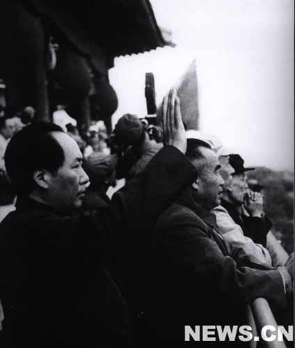 閱兵式接近結(jié)束時,天色已晚,天安門廣場這時變成了紅燈的海洋。無數(shù)的彩色火炮從會場四周發(fā)射。歡呼著的群眾在閱兵式完畢后開始游行。當(dāng)群眾隊伍經(jīng)主席臺附近走出會場時,"人民共和國萬歲!""毛主席萬歲!"的口號聲響入云霄。毛主席在擴(kuò)音機(jī)前大聲地回答著:"同志們?nèi)f歲!"毛主席伸出身子一再地向群眾招手,群眾則歡呼鼓掌,手舞足蹈,熱情洋溢,不能自己。當(dāng)游行的隊伍都已有秩序地一一走出會場時,已是晚間九點二十五分。舉著紅燈游行的群眾象火龍似地穿過全城,使新的首都浸在狂歡里直到深夜。(新華社北京1949年10月1日電)