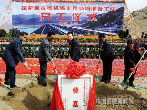 4月28日上午,西藏第一條高等級公路——拉薩至貢嘎機場專用公路準(zhǔn)備工程正式開工奠基,這標(biāo)志著西藏干線公路建設(shè)目標(biāo)從通暢向快捷的轉(zhuǎn)型。