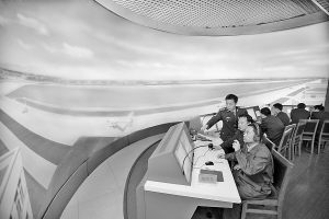 針對(duì)飛行指揮員培訓(xùn)周期長(zhǎng)、成本高的難題,成都軍區(qū)空軍研制成功飛行指揮模擬訓(xùn)練系統(tǒng)。該系統(tǒng)能真實(shí)再現(xiàn)飛行指揮的三維視景和塔臺(tái)環(huán)境。2008年,該系統(tǒng)榮獲軍隊(duì)科技進(jìn)步一等獎(jiǎng)。圖為4月14日,模擬訓(xùn)練的鏡頭。劉應(yīng)華攝