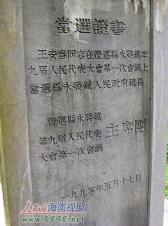 采訪中,記者聯(lián)系遵譚鎮(zhèn)委核實(shí)王安春的身份。遵譚鎮(zhèn)委辦公室的負(fù)責(zé)人告訴記者,王安春確實(shí)在澄邁永發(fā)鎮(zhèn)當(dāng)過(guò)鎮(zhèn)長(zhǎng),后來(lái)還在該縣農(nóng)業(yè)局就任副局長(zhǎng),在儒友村修造的活人墓,正是王安春所為。